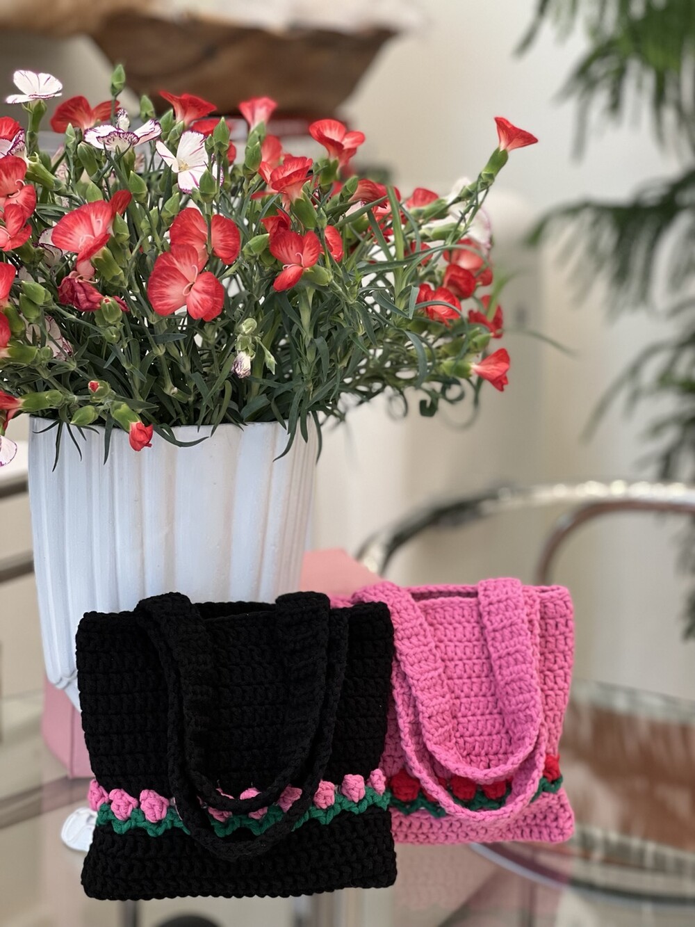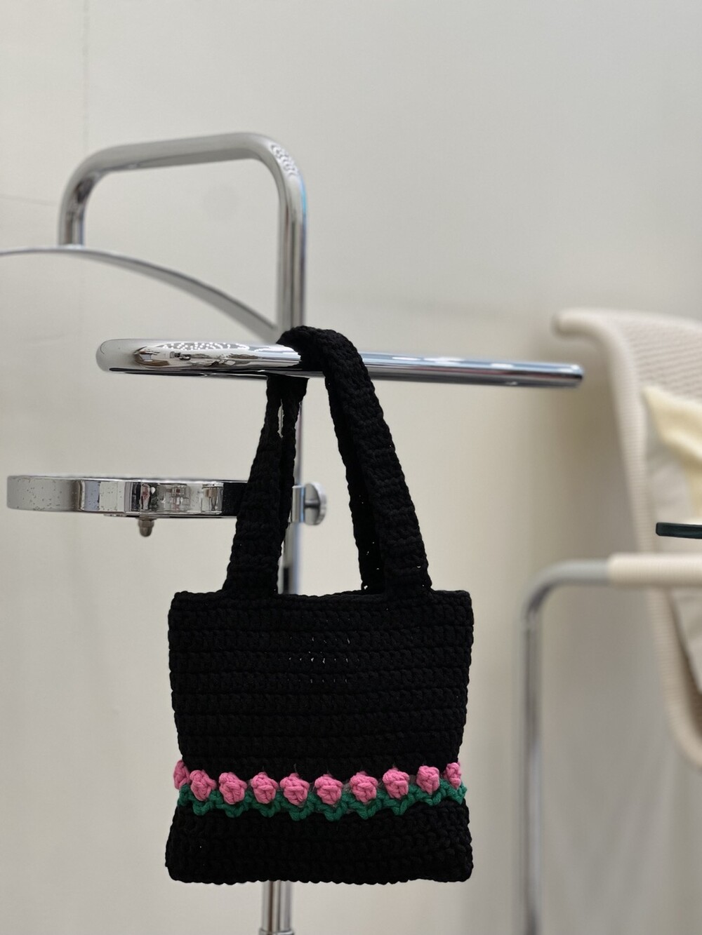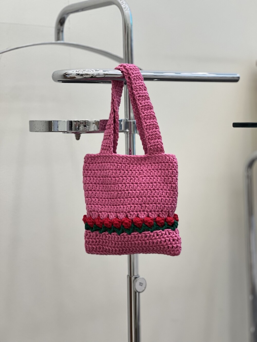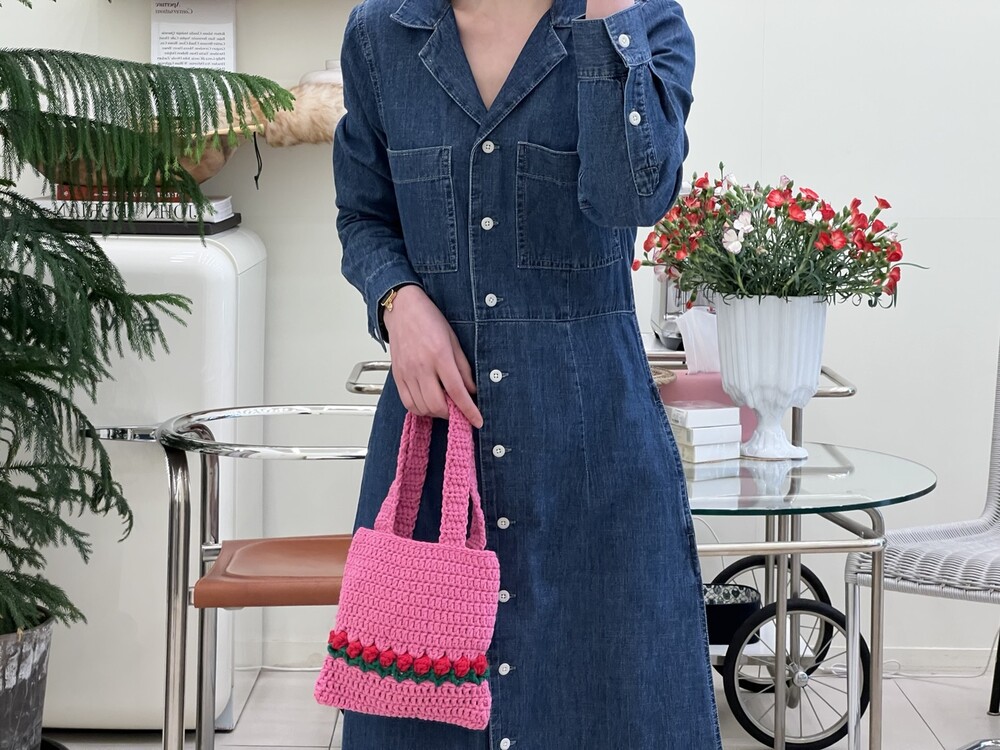 100% 핸드메이드 상품으로 키치한 매력의 니트 토드백 입니다