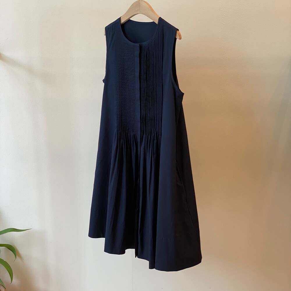 Navy Pintuck Dress