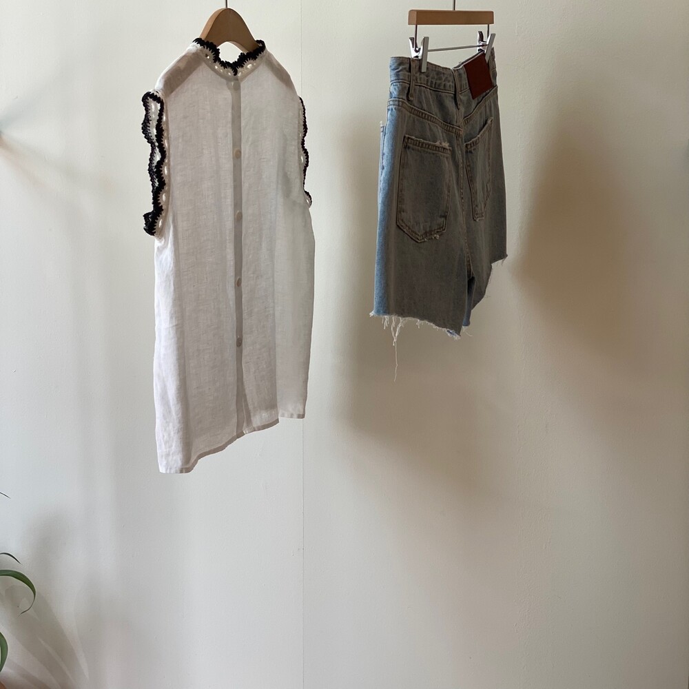 Knitted trimmed sleeveless